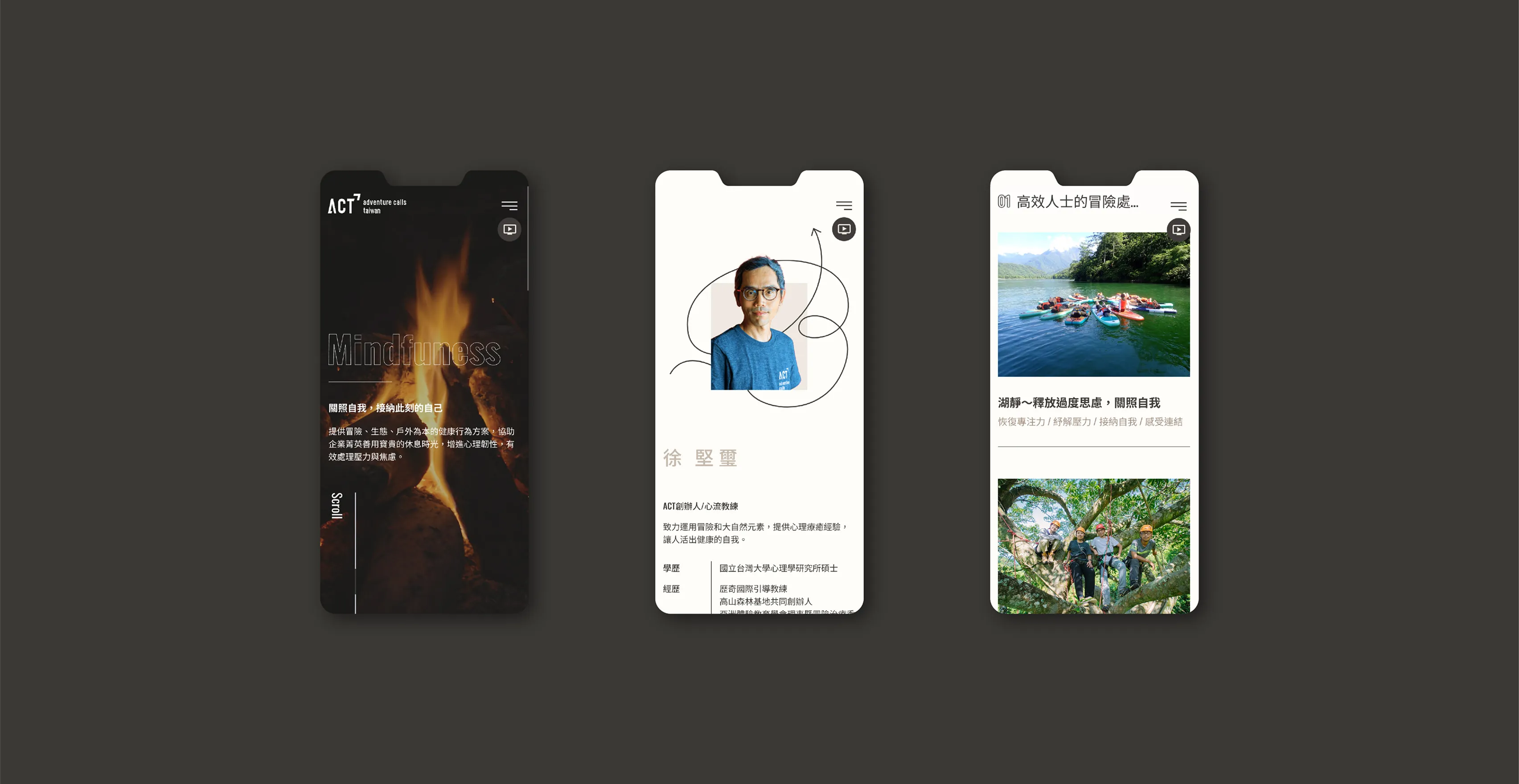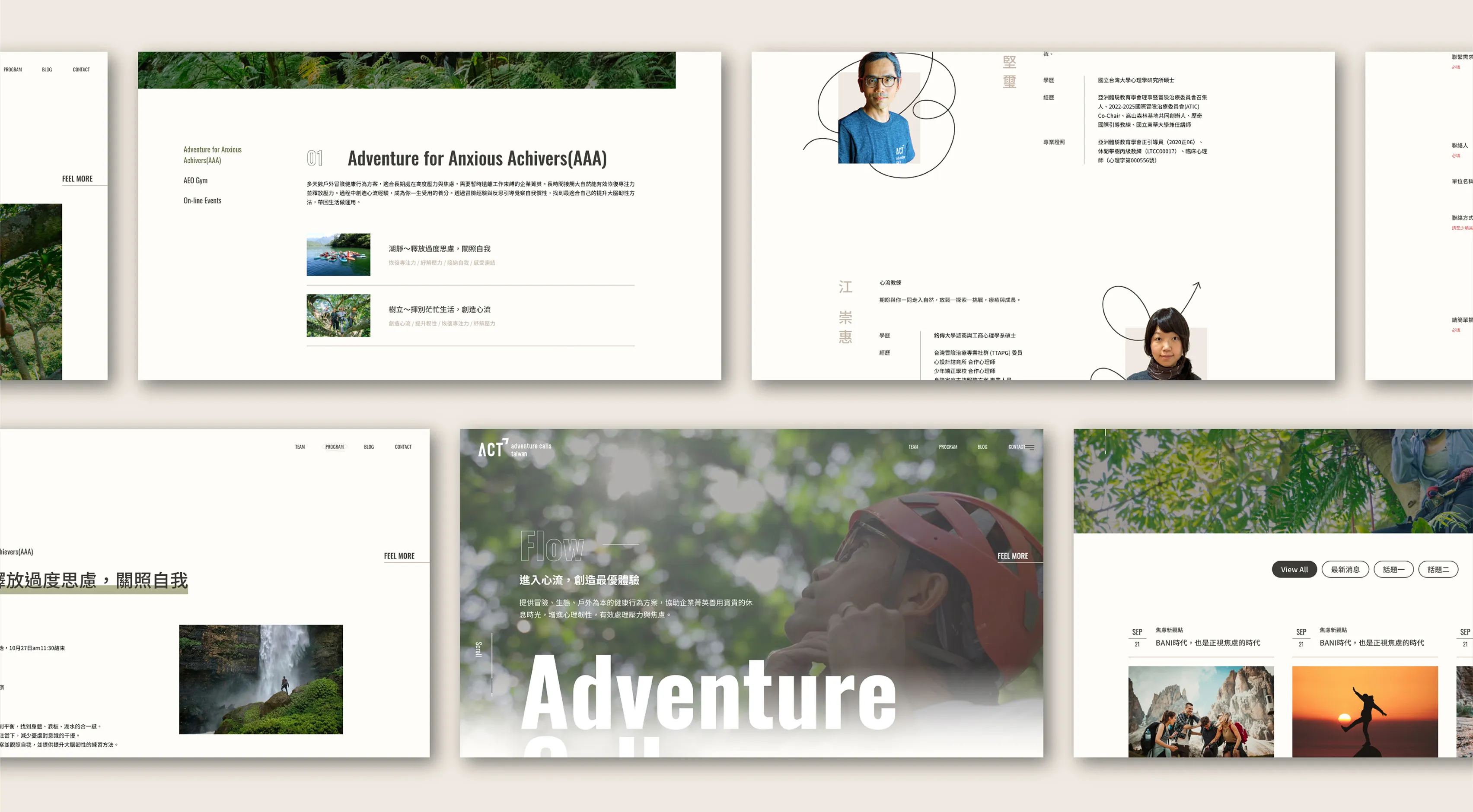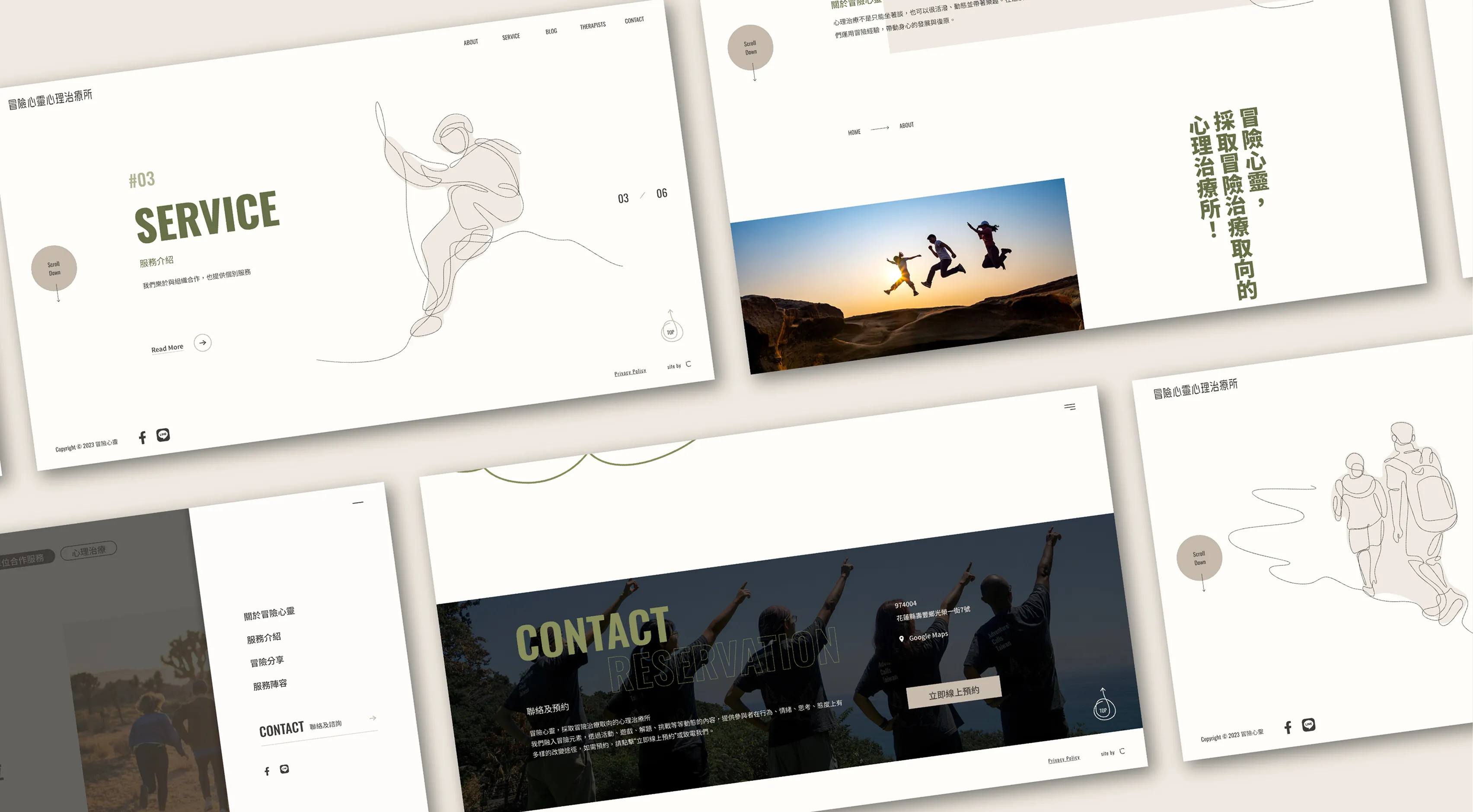 本專案最大的挑戰在於如何整合旗下兩個核心服務:「冒險心靈心理治療所」所需的專業醫療信賴感,以及「ACT」所代表的戶外探險與企業培訓活力。品牌需要傳達「歷程」、「指引方向」與「自由」等抽象的心理概念,同時要能平衡兩種看似衝突的特質——既要獲得醫療領域的專業認可,也要能吸引追求身心平衡的企業客群。如何在一個統一的視覺系統中精準溝通,是本案的首要課題。