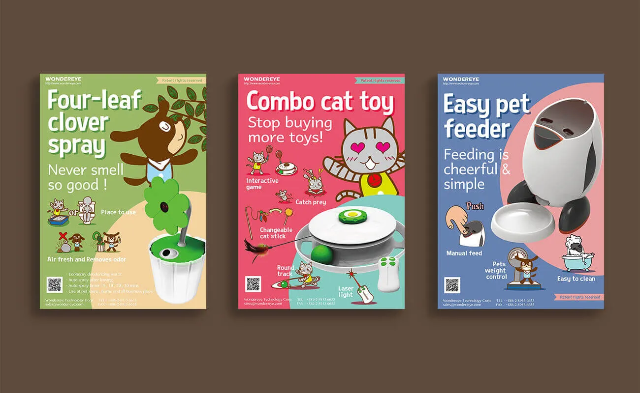 旺艾科技原為專業監控設備製造商,洞察到寵物市場的巨大潛力,決定跨界投入寵物科技用品的開發。本次專案的核心目標是為其新品牌建立獨特的識別系統,並進行全新的產品包裝設計,幫助品牌順利進入消費市場。